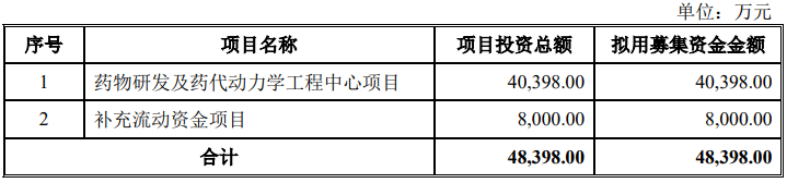 募資用途:此次IPO擬募資4.84億元,用于藥物研發(fā)及藥代動力學(xué)工程中心項目、補充流動資金項目。